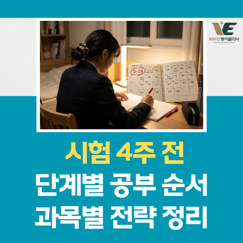 중간고사가 다가오면 학생도, 학부모님도 마음이 조급해집니다. 하지만 준비 없이 시험장에 들어가는 것과, 4주 전부터 단계적으로 준비한 것은 결과에서 분명한 차이를 만들어냅니다. 이번 글에서는 시험 4주 전부터 실제로 적용할 수 있는 주차별 전략과, 과목별 공부법을 구체적으로 정리해 드립니다. 계획이 처음이라면 이 순서대로 따라오시면 됩니다. 계획을 세울 때 가장 먼저 해야 할 일은 공부해야 할 자료를 종류별로 분류하는 것입니다. 과목별로 공부할 자료를 나열한 뒤, 교과서와 자습서처럼 반드시 봐야 하는 필수 자료와 평가 문제집, 학교 프린트, 학원 교재 등의 보완 자료로 구분해 두면 이후 시간 배분이 훨씬 명확해집니다....... <img src="https://blogthumb.pstatic.net/MjAyNjAzMTRfMjgz/MDAxNzczNDc1MjA0NDM4.EyHxNHsP55daAS5OTI986WpHkyAKH8DuOdmToMV5qGcg.hekOx4MdBFAxXb7wIxjYmEdVgN8R_01VeLA6iZc4NbYg.PNG/%BD%E6%B3%D7%C0%CF.png?type=s3" />