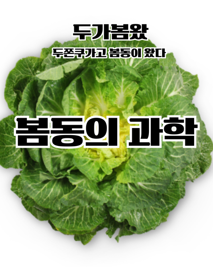 봄동의 어원은 어래와 같이 두 가지 썰이 있다. 어원1: 봄동=봄+동(冬), 말 그대로 봄+겨울을 의미함 어원2: 봄에 수확하는 소'똥'같이 생긴 모양이라 봄똥으로 불리우다 순화된 봄동으로 불림 겨울이 지나고 시장에 초록빛 채소가 다시 등장할 즈음이면 가장 먼저 눈에 띄는 채소가 있다. 납작하게 퍼진 잎과 부드러운 식감이 특징인 봄동이다. 봄동은 단순한 제철 채소가 아니라 식물의 생존 전략과 농업의 품종 개량 역사가 함께 담긴 작물이다. 봄동은 배추와 같은 종에 속하는 채소다. 학술적으로는 봄동과 배추 모두 Brassica rapa1라는 종에 속하는데 결구2 여부와 재배 환경에서 차이가 난다. 일반 배추와 달리 봄동은 잎....... <img src="https://blogthumb.pstatic.net/MjAyNjAzMDlfODIg/MDAxNzczMDQ3Mzc2OTI2.HCfoiUYlsTyhXZJTP-9gwKnTIATVuiEkjHuvxnQ0SDgg.VCgncZGnQ0qMUJBI4oQtfnGu9Eyq13Yu_ecQDRY3LdAg.PNG/900%A3%DF1%A3%DF20260309%A3%DF162840%A3%DF0000.png?type=s3" />