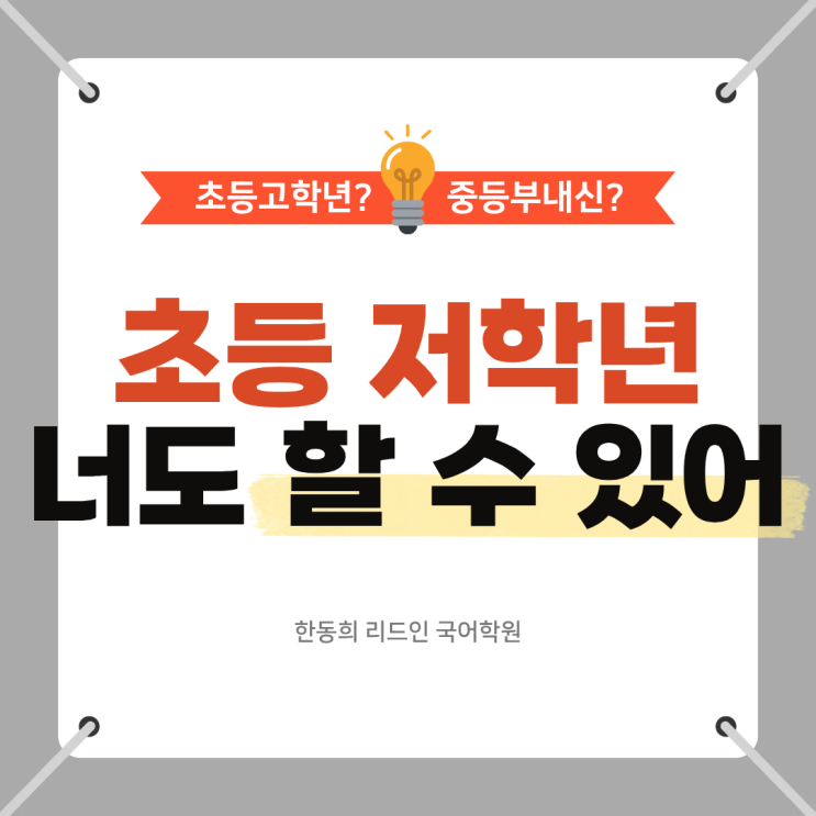 아니요! 저희는 초등 저학년부터 중등 3학년까지, 각 학년에 맞는 면학 분위기 조성을 통해 효율적인 수업을 진행하고 있습니다. 상담을 하다 보면 학부모님들께서 공통적으로 하시는 걱정이 있습니다. 저희 학원은 독서 수업을 기반으로 진행하나 내신 기간에는 내신 국어 공부를 도와주고 있습니다. :) 하지만 '내신' 이라는 키워드에 꽂혀 중등부만을 위한 학원이라고 많이들 생각하시더라구요. 그렇다보니 저학년 학부모님은 "우리 애가 중학생 아이들 틈에서 기죽거나 적응을 못하지 않을까" 걱정하시고, 고학년 학부모님은 "어린 동생들이 왔다 갔다 하면 면학 분위기가 흐트러지지 않을까" 노심초사하....... <img src="https://blogthumb.pstatic.net/MjAyNjAzMTJfOCAg/MDAxNzczMzE3Njk3Nzc0.s-DLw1KrfAgQii5SSDa3uynO1eaegNK893v8kJStvoMg.EFZrv8zh5E93Po4dhUqGSKrACMZidzEvY8hNNSaRssUg.PNG/%B8%AE%B5%E5%C0%CE_%C8%AB%BA%B8%B9%B0.png?type=s3" />