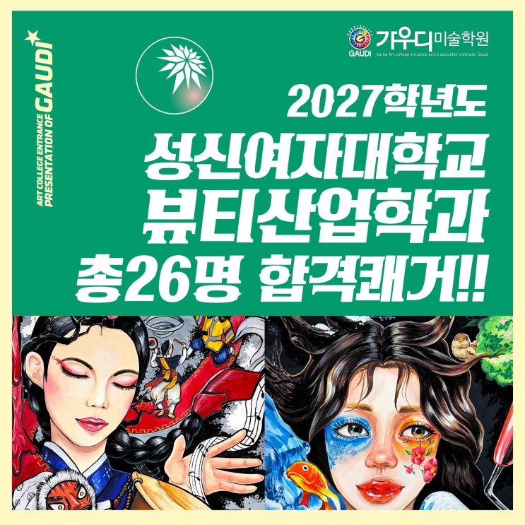 성신여대 뷰티산업학과!! 총26명 합격 성북 미술학원 가우디 2027 성신여자대학교 뷰티과 수시 정시 입시정보 안내
