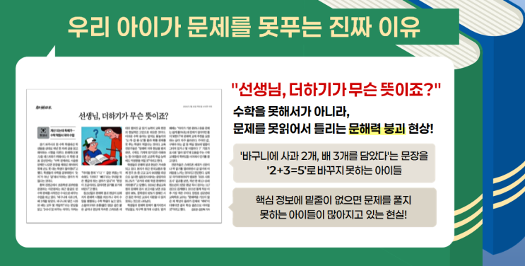 요즘처럼 모든 것이 빠르게 변하는 AI 시대일수록 오히려 다시 독서에 집중해야 할 때입니다. 기술이 발전하는 시대이지만 결국 아이들의 탄탄한 독해력이 곧 미래의 경쟁력이 되기 때문입니다. 이번에는 우리 아이들의 읽기 능력을 어떻게 효과적으로 키워줄 수 있을지 그 해답을 함께 찾아보겠습니다. 스마트 시대가 되면서 아이들의 읽기 힘이 눈에 띄게 약해졌습니다. 학원이나 공부방에서 선생님, 더하기가 무슨 뜻이죠 라고 묻는 아이들이 생겨나고 있는데요. 바구니에 사과 2개, 배 3개를 담았다는 단순한 문장을 더하기 기호로 바꾸지 못하는 아이들이 많습니다. 핵심 정보에 밑줄이 그어져 있지 않으면 아예 문제를 풀지 못하는 것이 지....... <img src="https://blogthumb.pstatic.net/MjAyNjAzMTdfNjYg/MDAxNzczNzI3ODQyNTM3.IxjHMqvB75FvneTYyY7-inVIXVi5ci2I1q37PjtXs_cg.mrc_paOoIvnBE7WXATcU6oB5GlYHbEpQlnmYZgEZVdYg.PNG/image.png?type=s3" />