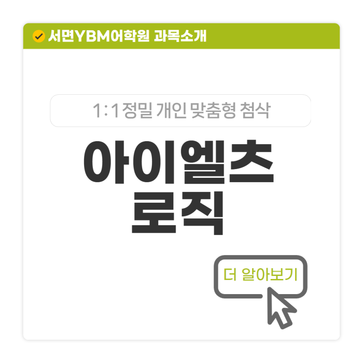 안녕하세요 부산아이엘츠학원 YBM서면입니다!! 지난달에도 안내드렸던 루시's 아이엘츠로직에 대해서 알려드리려고해요!! 열심히 하는데 점수는 오르지 않아 고민중이신 분들을 위한 수업이니 고민중이신 분들은 꼭 같이 보자구요!! 열심히 공부하지만 점수가 안 오르시는 분들 많으시죠?? 그런분들께 Lucy 쌤이 항상 하시는 말씀이 있어요! 점수는 감이 아니라 구조입니다. 학생분들이 특히 스피킹과 라이팅 파트를 어려워하시죠?? 그래서 공식만 외워서 가시는 분들이 많으실거에요 공식만 외운 답변은 채점관을 설득할 수 없어요 그래서 부산아이엘츠학원 YBM서면에서 스피킹과 라이팅 전문 반을 개설했답니다. 단순히 긴 글이 아니라 순....... <img src="https://blogthumb.pstatic.net/MjAyNjAzMDlfMTA0/MDAxNzczMDE3ODUzMjg0.jX4g9hP2hwGDUYb2aoCblo7zr21GGYWNM7MlYkXiuYYg.kOEg36-XYHjkZuMSKjLFb95hZJRjnQHrUqGlpRYfGQQg.PNG/%BA%ED%B7%CE%B1%D7_%B0%FA%B8%F1%BC%D2%B0%B3_%286%29.png?type=s3" />