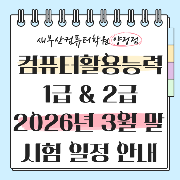컴퓨터활용능력 2026년 3월 말 1급 2급 일정 안내
