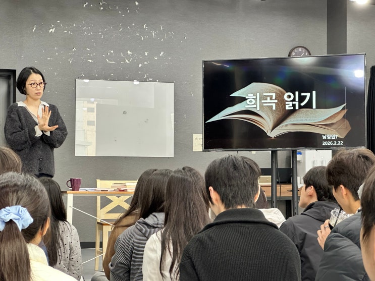 안녕하세요 미니쌤이에요ㅎㅎ 오늘은 토요특강 남정원선생님께서 특강 때 말씀해주신 꿀팁들을 정리해 봤어요 ㅎㅎ 바로 연극 영화과 입시생의 필수 덕목인!! 희곡 읽기입니다! 희곡이란? 희곡은 무대에서 배우가 연기하기 위해 쓰는 대본으로, 인물의 대사와 행동을 중심으로 사건을 전개하는 극 문학을 뜻합니다. 문학적 관점에서는 대사, 지문(무대·행동 지시), 해설(설명)로 구성된 3요소가 (핵심)으로 설명됩니다. 남정원 선생님께서 말씀하시는 희곡 읽는 방법으로는!!! 첫 번째로 읽을 때는 소설책 읽듯이 읽기입니다 단! 해설, 지시문, 대사 글자로 되어있는 모든 글들 읽기입니다!! 두 번째 읽을 때는 메모하며 읽기 희곡 책 또....... <img src="https://blogthumb.pstatic.net/MjAyNjAzMDlfMTk2/MDAxNzczMDMzNTA4ODEz.JZ7gnPyYnmY8CLBCzd6rAl92s4k7R4ox16iPGnsmjjsg._t1Z_NufwzcMMRCtB71E7lhJAIu6XudS0x2i-Skcxvcg.JPEG/KakaoTalk_20260309_140837034_02.jpg?type=s3" />