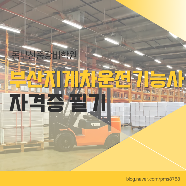 부산에서 지게차 자격증 취득을 준비하고 있다면 2026년 국비지원을 활용해 부담을 줄이면서 체계적으로 준비하는 것이 가장 효율적인 방법입니다. 특히 물류 건설·제조업 현장에서 수요가 꾸준히 증가하면서 지게차 운전기능사 자격증의 활용도와 취업 경쟁력은 더욱 높아지고 있습니다. 필기와 실기를 한 번에 준비하고 싶다면 부산 정관에 위치한 동부산중장비학원을 통해 실무 중심 교육을 받아보는 것도 좋은 선택입니다. 지게차 운전기능사 자격증이 필요한 이유 지게차 운전기능사는 산업현장에서 필수로 요구되는 국가기술자격증입니다. 특히 3톤 이상 지게차를 운전하려면 반드시 자격증이 필요하며 물류센터 항만 공장 건설현장 등 다....... <img src="https://blogthumb.pstatic.net/MjAyNjAzMDlfNjgg/MDAxNzczMDE4NTY3NTAw.k_CjHS68k_1C5RfvOnG16G5box5JHAlRnAuMw1q4DJEg.VP0EmdT66S8isAZq1UmaGZnF9XmUaDeqp_R67i-7QD0g.PNG/%B5%BF%BA%CE%BB%EA%C1%DF%C0%E5%BA%F1%C7%D0%BF%F8_%2827%29.png?type=s3" />