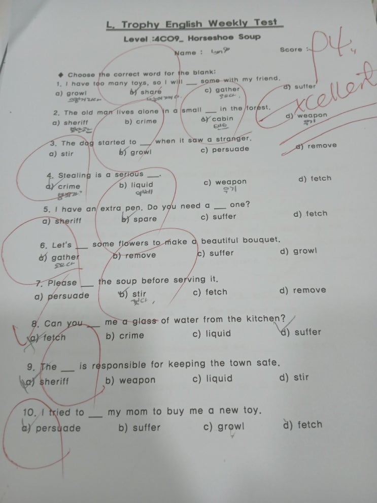각 반마다 Vocabulary Test, Grammar Test, Review Test , Weekly Test, Monthly Test. 등 다양한 테스트가 실시된다. 아이들은 시험이 없으면 자발적인 학습이 이루어지기 힘들기 때문이다 시험지 유형은 어느정도레벨에 이르면 한유형에 국한시키지 않으며 다양한 형태로 변형시킨다 모든 시험지는 반별로 하나하나 다 내손으로 직접만든다! 일부러 이건 틀리겠지 하는 어려운 문제도 꼬아서 내보고 , 개념은 이해했는지 응용은 되는지 한문제 한문제 고민해서 만든다..숱한 시험지중 몇개 나에게 저장되어 남아있는 시험지들의 일부이다 시험을 치는 이유는 하나의 훈련이자. 수업을 잘따라오는지에 대한 점검방법이다 자신의 생각을 물어보는....... <img src="https://blogthumb.pstatic.net/MjAyNjAzMDJfMTMx/MDAxNzcyNDU3MDU2NTYx.323-Hckodt6DN8ayFpGBNU5RpfenndAJNQJo5age3WIg.qzPgWHhnEk-H6cQgv5qTxo9NsKim1hr03An3JoV7EGMg.JPEG/900%A3%DF20260213%A3%DF155815.jpg?type=s3" />