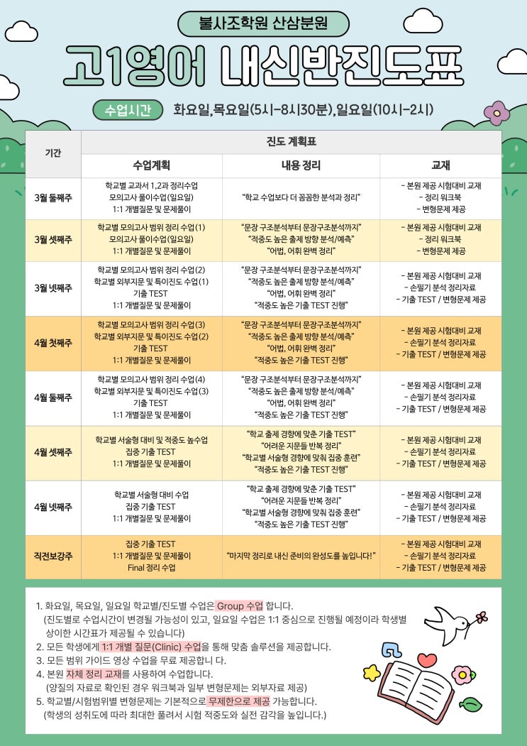 불사조학원 영어 고1 진도계획표 [삼산점]