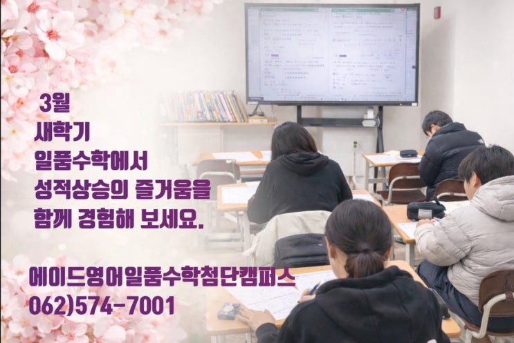 3월, 새학년이 시작되었습니다. 우리 아이, 이번 학기는 달라질 수 있을까요? 3월입니다. 새 교복, 새 교과서, 새 담임선생님, 새 친구들. 아이들은 설렘과 긴장 속에서 또 한 번의 출발선에 섭니다. 그런데 부모님의 마음은 어떠신가요? “이번엔 성적이 좀 오를까…” ”작년처럼 흐지부지되진 않을까…” “수학이 제일 걱정인데…” 3월은 단순한 시작이 아니라 방향을 결정하는 달입니다. 왜 3월이 가장 중요할까요? 1학기 중간고사는 보통 4~5월. 실제로 공부할 수 있는 시간은 한 달 남짓입니다. 3월에 흐름을 못 잡으면 아이들은 이렇게 말합니다. “아직 시작한 지 얼마 안 됐잖아요.” “다음 시험부터 잘하면 되죠.”....... <img src="https://blogthumb.pstatic.net/MjAyNjAzMDNfMjg2/MDAxNzcyNDcxMDU2MDM0.YwlfBrk3AHLjMtka_5axurJ0qnQUxFcWwlOSyAl4cBQg.epe2Xex74QQjGRHtsOfE8Tc0JLhD3_KSZgmORCZIZVEg.JPEG/IMG%A3%DF9445.jpg?type=s3" />