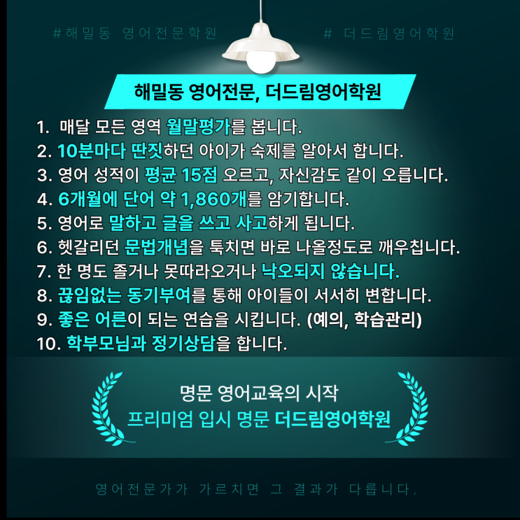 해밀동 더드림영어학원, 클래스 절반이 대기가 걸려있습니다.