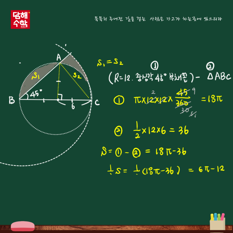 문제를 푸는 시간보다, 문제를 다시 보는 시간 담해는 문제를 정리하는 시간보다 문제를 다시 보는 시간을 더 오래 둡니다. 중등 수학에서 아이들이 멈추는 순간은 대부분 계산이 어려워서가 아니라, 이 문제를 어떤 기준으로 봐야 하는지 정리가 되지 않았을 때입니다. 아래에 정리한 이미지는 정답을 모아둔 자료가 아닙니다. 수업 중, 아이의 생각이 잠시 멈췄던 지점에서 함께 다시 들여다보던 장면들입니다. 회전 문제가 나오면 공식보다 먼저 회전축이 무엇인지부터 확인했고, 겉넓이와 부피를 다룰 때는 면을 더하기 전에 어떤 면이 새로 생겼는지를 먼저 살폈습니다. 각과 도형 문제에서도 답을 바로 찾기보다 이 각이 어디서 만들어졌는....... <img src="https://blogthumb.pstatic.net/MjAyNTEyMTVfMTMg/MDAxNzY1NzkzMjUwNTg5.hGtR48IT0-SKx6A7pjMcy5vqrhwkA53MU4FvriD7aeAg.vYGHoQ-PRfAYaq0ShUNaiB42qdUFkwhcrnaOBTmZtEgg.PNG/%B4%E3%C7%D8%BC%F6%C7%D0%B1%B3%BD%C0%BC%D2_%C1%DF1-2_2.png?type=s3" />