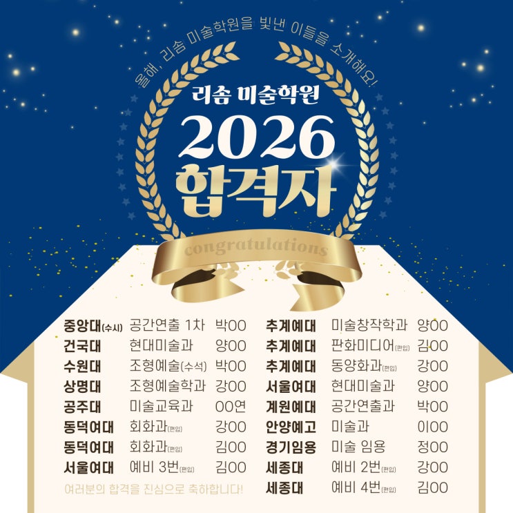 26 리솜미술학원 합격자 소식