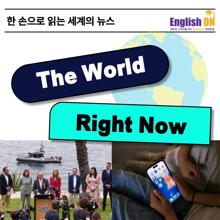 안녕하세요 안산 영어전문학원 잉글리쉬온입니다. 오늘은 호주에서 최근 시행된 법과 관련한 CNN 기사를 살펴보며 영어 표현을 공부해 볼 거예요. 기사에서는 호주 정부가 16세 미만 청소년의 소셜미디어 사용을 금지하는 법을 시행하며 청소년들의 소셜 미디어 사용에 대한 불안을 완화했다고 하지만, 이에 대해 정말로 걱정이 사라졌는지에 대한 의문도 제기하고 있습니다. 이 시간에는 기사 속 표현과 함께 이런 주제의 뉴스에서 자주 쓰이는 패턴도 함께 익혀보겠습니다. 그럼 시작해 볼까요? The World Right Now 이 시간 세계 뉴스 Australia has just relieved its anxiety over teens on social media – or has it? 호주, 16세 미만 청....... <img src="https://blogthumb.pstatic.net/MjAyNTEyMTFfMjYx/MDAxNzY1NDM4OTcxMjQw.Kk0UkQAcijUzdmzOhKyeTst6SioVXvnFuViZREb-zAog.RF2-I4ivz2Wg8mkE-wD67GNV7pSMB-t2ZyA0GpvXCpIg.JPEG/%BE%C8%BB%EA_%BF%B5%BE%EE%C8%B8%C8%AD_CNN_%C8%A3%C1%D6%2C_16%BC%BC_%B9%CC%B8%B8_%C3%BB%BC%D2%B3%E2%C0%C7_%BC%D2%BC%C8%B9%CC%B5%F0%BE%EE_%BB%E7%BF%EB_%B1%DD%C1%F6_%281%29.jpg?type=s3" />