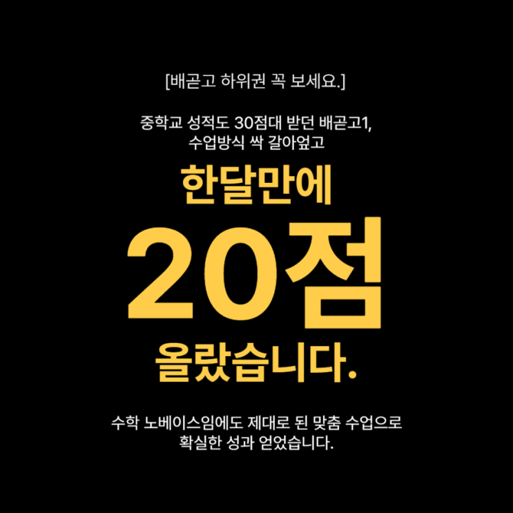 [배곧고 하위권 꼭 보세요] 중학교 성적도 30점대 받던 배곧고1, 수업방식 싹 갈아엎고 한 달만에 20점 올랐습니다._배곧수학학원