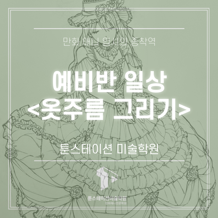 안녕하세요 툰스테이션 미술학원입니다! 요즘 툰스에서는 옷주름 그리기가 한창인데요! 옷주름에 대해 간단한 팁들과 툰스 친구들의 성장 과정을 보여드리겠습니다~ 우선 옷주름 그리기 첫번째 팁! [눈에 보이는 모든 면을 표현하려 하지 않기] 품이 좁지만 두께감이 있는 옷인데요. 눈에 보이는 모든 면을 선으로 표현하려 하지 않습니다! 미세하게 구불구불한 라인을 전부 묘사하지 않고, 적당히 끊어줄 수 있어야 합니다. 가끔 옷주름 자료를 보다보면, 주름은 많지만 막상 예쁘진 않은 자료 사진들 본 적 있으시죠? 눈에 보이는 모든 걸 다 표현한다고 좋은 건 아닙니다! 두번째 팁! [과장과 생략하기] 첫번째 팁이랑 같은 맥락을 띄고 있는....... <img src="https://blogthumb.pstatic.net/MjAyNTEyMTJfMTEg/MDAxNzY1NTE2NjcwNDQ4.GZvrb74nx3v74ONoli112e7nWZUVjg4eCde5PlAoMo8g.zrArVX3rFgUZLWIqLyReYTy8US3-ChHzb4CPN-ZzTikg.PNG/%C1%A6%B8%F1%C0%BB-%C0%D4%B7%C2%C7%D8%C1%D6%BC%BC%BF%E4__%BA%B9%BB%E7%BA%BB-_4_-001_%288%29.png?type=s3" />