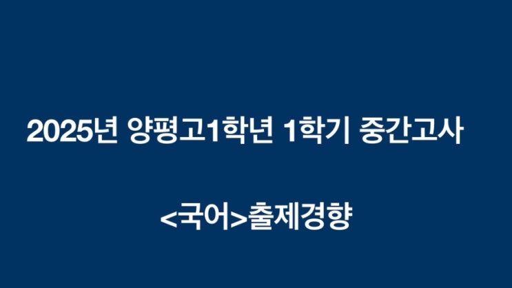 중간고사가 한달 조금넘게 남은 시점인데요 고등학교에 입학한 고 1 학생들이 가장 많이 하는 질문이 있습니다. “고등학교 시험은 중학교 시험과 많이 달라요?” 입니다. 사실 고1 첫 중간고사는 시험 범위, 문제 스타일, 서술형 비중 등 모든 것이 처음이라 학생들이 가장 부담을 느끼는 시험입니다. 오늘은 양평고 작년 1학기 중간고사 국어 시험을 바탕으로 실제 출제 경향을 정리해 보겠습니다. 고등학교 첫 시험은 물론 결과도 중요하지만 학교의 시험유형 및 스타일을 이해하는 과정이 더 중요합니다. 시험 유형을 미리 파악하고 준비한다면 훨씬 안정적으로 첫 시험을 시작할 수 있습니다. 불안에 떨지말고, 차근차근 준비해보도록 합시....... <img src="https://blogthumb.pstatic.net/MjAyNjAzMTBfMTA4/MDAxNzczMTM2MDE2Mzkz.xpBAiFwl0iI6SNPu9JD6JQGHTdqCu8bLYkPMp2uu9uEg.Q1zWbquYyFC7qJ0i4JWuCK_2D6PRaFuWjdRPJLqWQz8g.JPEG/%C7%C1%B7%B9%C1%A8%C5%D7%C0%CC%BC%C7_6.001.jpeg?type=s3" />