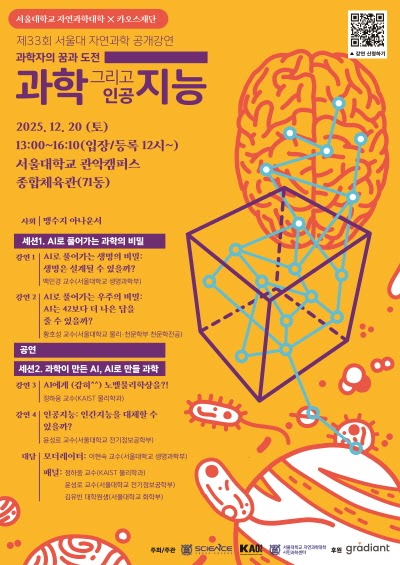 안녕하세요. 지난 번 서울대 강연 때도 학생들과 함께 다녀왔었는데, 눈이 엄청 많이 왔었던 기억이 있어서, 날씨부터 찾아봤습니다. 내일은 비 소식이 있네요. 조금 불편할 수 있겠는데, 우산을 잘 챙겨야하겠습니다. 강연 내용은 아래와 같습니다. 미리 살펴보고 들으면 더욱 도움이 되겠죠? 이번 간담회 때 주제도 Ai 관련한 이슈를 다루어드렸었습니다. 마침, 서울대 자연과학대학 공개 강연도 ai 관련내용이네요. ai와 함께 더불어 살아가게 될 우리 아이들이 지금부터 많이 생각해봐야할 주제라고 생각됩니다. 최근 뉴스에서, 대학생들이 ChatGPT로 과제를 냈다가 부정행위로 적발됐다는 소식 보셨을 겁니다. 우리 아이도 AI 쓰다가 공부 머....... <img src="https://blogthumb.pstatic.net/MjAyNTEyMjBfMjE4/MDAxNzY2MTYwODI5NDcy.DoAWKc4ygGfEJjH8ZhhiiH5AYL25X9ovy1S57DbmizAg.mUyt31YriBLTJULM4Vv9NKISr3YMWkMBmcmFkMRQcGAg.JPEG/%BC%AD%BF%EF%B4%EB%B0%AD%BF%AC.jpg?type=s3" />