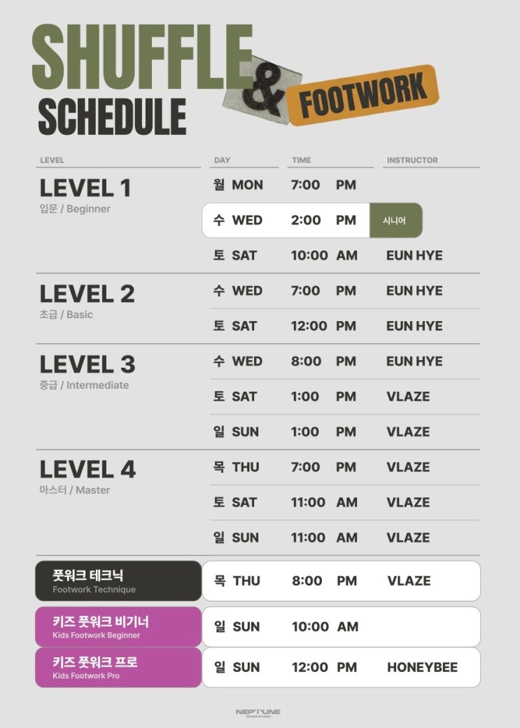 NEPTUNE | 2026 NEPTUNE 댄스 스튜디오 3월 신규 시간표 안내