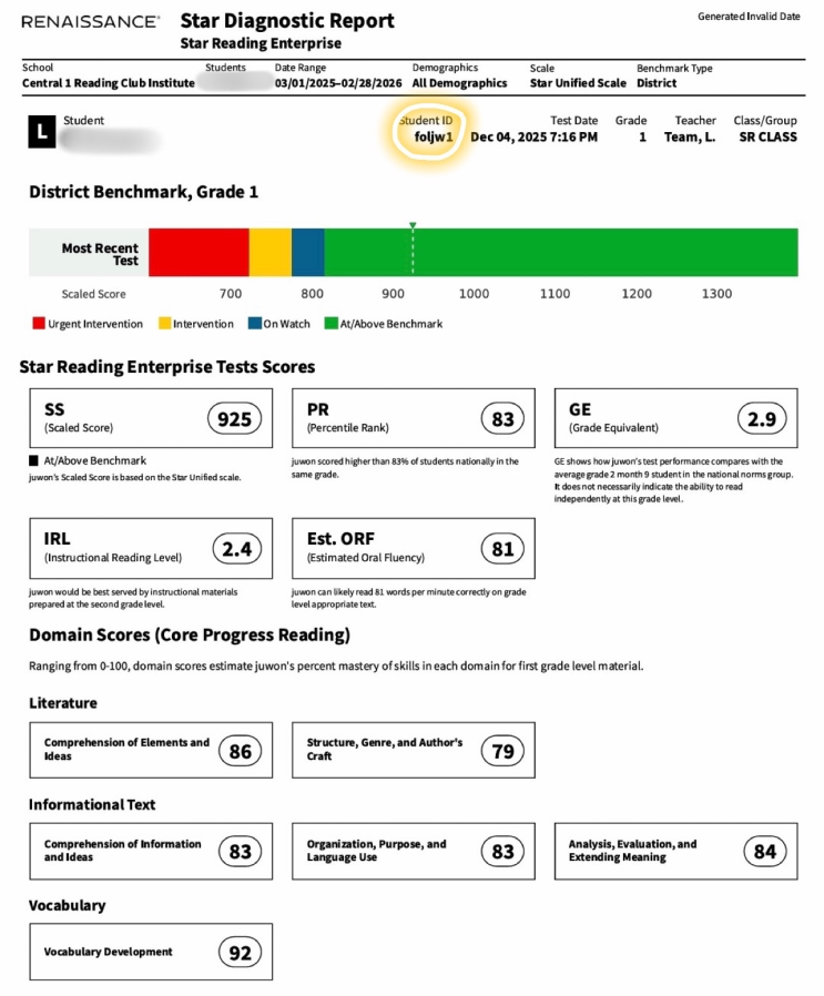SR TEST와 AR TEST, 무엇이 다를까요? 아이 영어도서관을 찾으시는 부모님들께서 가장 많이 궁금해 하시는 부분이 바로 SR 테스트와 AR 테스트입니다. 센클에서도 상담할 때 자주 받는 질문이기에, 한 번에 이해되도록 정리해드립니다. SR TEST란? SR(Star Reading) 테스트는 아이의 ‘영어 읽기 수준을 측정하는 공식 진단 테스트’입니다. 미국 르네상스러닝(Renaissance Learning)에서 개발한 공식 프로그램으로 아이의 읽기 이해력 + 어휘 수준을 정밀하게 분석해 아래 지표들을 제공합니다. SR에서 제공하는 주요 지표 중 가장 중요한 POINT GE (Grade Equivalent) : 미국 학년 기준 읽기 수준 IRL (Independent Reading Lev....... <img src="https://blogthumb.pstatic.net/MjAyNTEyMDdfMjcy/MDAxNzY1MDkxMjY1NTg3.QmML8GxbqafOordLwmAMsZdw_9Kodze6S16CpFZIHsgg.13m6UxmJw3YvDqMIAqZ-MWULrh8fC9ot9K3poQ9YewUg.PNG/image.png?type=s3" />