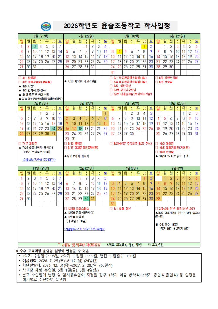윤슬초 피아노 |2026학년도 윤슬초 학사일정 및 하교 시간표 안내 시간표,시정표,이미지파일