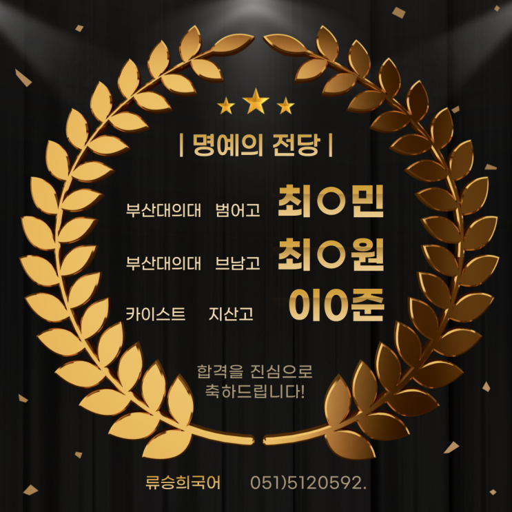 범어고 지산고 브남고 사대부고 금정여고 증산고 청운고 부산외고 학생들 모두 수고 많으셨습니다. 영광의 합격자들 진심으로 축하합니다. 영광스러운 앞날을 기원드립니다. 류승희국어학원 드림 ◆금정구 구서동 류승희국어전문학원 T. 051-512-0592 <img src="https://blogthumb.pstatic.net/MjAyNjAzMjZfMTQ1/MDAxNzc0NTIwNjQ5MDk2.CdgQ-h_15_jPCncQvA3DMbvB4_s3CoWycRgINvEm1RUg.OXMy6ZS8SKgQYuxclpRmUcyYQtLV_EaJIeWUa3QGKVwg.PNG/001.png?type=s3" />