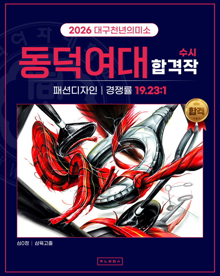 대구 디자인 입시미술 대구천년의미소가 전해드리는 2026학년도 대입 수시합격 재현작 공개! 대구천년의미소 학생들의 놀라운 실기수준을 감상하세요! 이번 순서는 동덕여대 패션디자인학과 2026 수시합격 재현작과 합격생 인터뷰입니다! 여러분이 궁금해하시는 동덕여대 합격 비결을 하나하나 알아보세요! 경쟁률 높은 동덕여대 실기전형에서 흔들림 없는 실기력을 쌓는 비결! 매년 동덕여대 합격자를 배출하는 대구천년의미소와 함께 동덕여대 입시 성공의 길을 걸어봅시다! 상담문의 명덕천년의미소 053-431-5005 수성천년의미소 053-755-0066 인스타 daegu_chunmi <img src="https://blogthumb.pstatic.net/MjAyNjAyMjhfMjY4/MDAxNzcyMjY2ODY5NjQ3.9RxDlSBxErplzHu57BncMaJtegLoXp6c3Z1Q6FAbgAkg.BWXMm-eidP4Uiw7tP3L_6zG-QHlJatnZ1S_4P_vxsjog.PNG/26%C7%D5%B0%DD%C0%E7%C7%F6%C0%DB_1.png?type=s3" />
