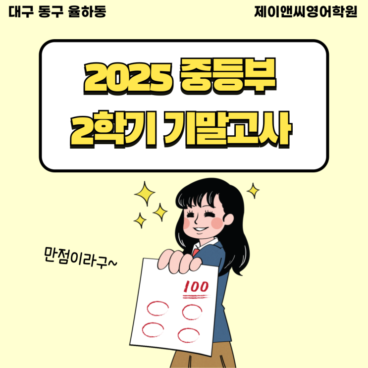 [대구 동구 율하동 제이앤씨영어학원] 2025년 2학기 기말고사 중등부 내신결과 율원중 신기중 안심중