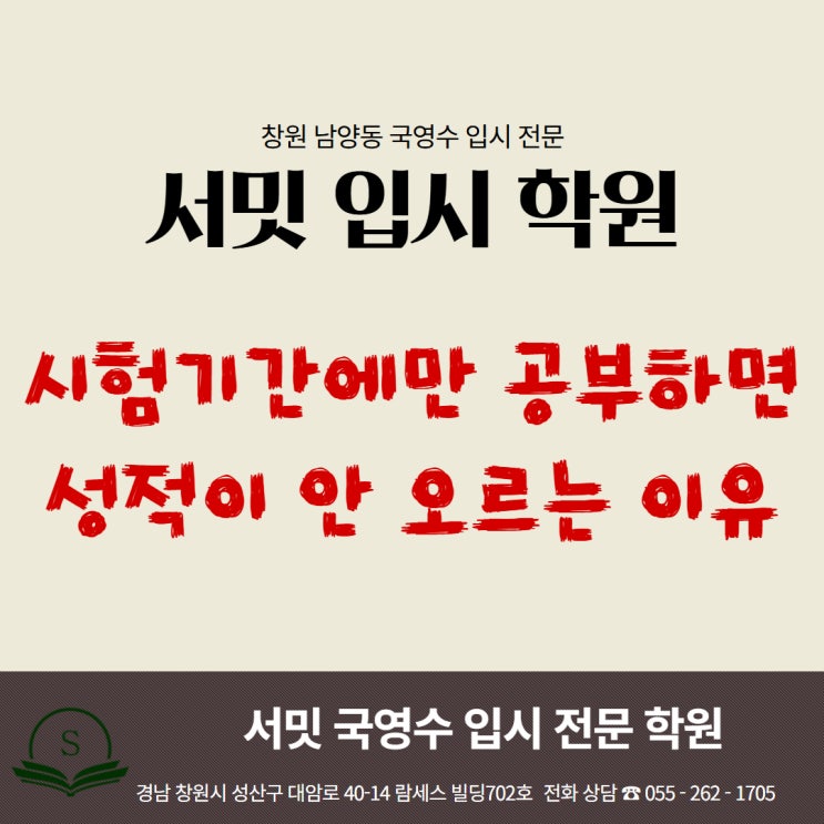 시험기간에만 공부하면 성적이 안 오르는 이유 중학생 내신 성적은 공부 시기가 중요합니다 중학생들을 지도하다 보면 이런 이야기를 자주 듣습니다. “시험기간에 열심히 했는데 성적이 생각보다 안 나왔어요.” “시험 2주 전부터 공부했는데 결과가 기대보다 낮아요.” 많은 학생들이 시험 기간이 되면 공부 시간을 늘리고 문제를 많이 풀려고 합니다. 그런데도 성적이 크게 오르지 않는 경우가 있습니다. 그 이유는 대부분 공부의 시작 시점과 방법에 있습니다. 시험 기간에만 공부하는 방식은 일시적으로는 성적이 유지될 수 있지만, 점점 학년이 올라갈수록 한계를 느끼게 됩니다. 오늘은 시험기간에만 공부하면 성적이 쉽게 오르지 않는 이....... <img src="https://blogthumb.pstatic.net/MjAyNjAzMDhfODMg/MDAxNzcyOTgwOTk3MDE4.nqY8BVv-5vBx-CyBqLqTLqV7kmFXsffoTJ_MBQR6DjEg.NqrUV-YalxFbX2GRWffOwPjBWJzHUMI8OX2eLQkaEtQg.JPEG/%BC%AD%B9%D4_%C1%DF%B5%EE%BA%CE_%B8%F0%C1%FD_%2849%29.jpg?type=s3" />