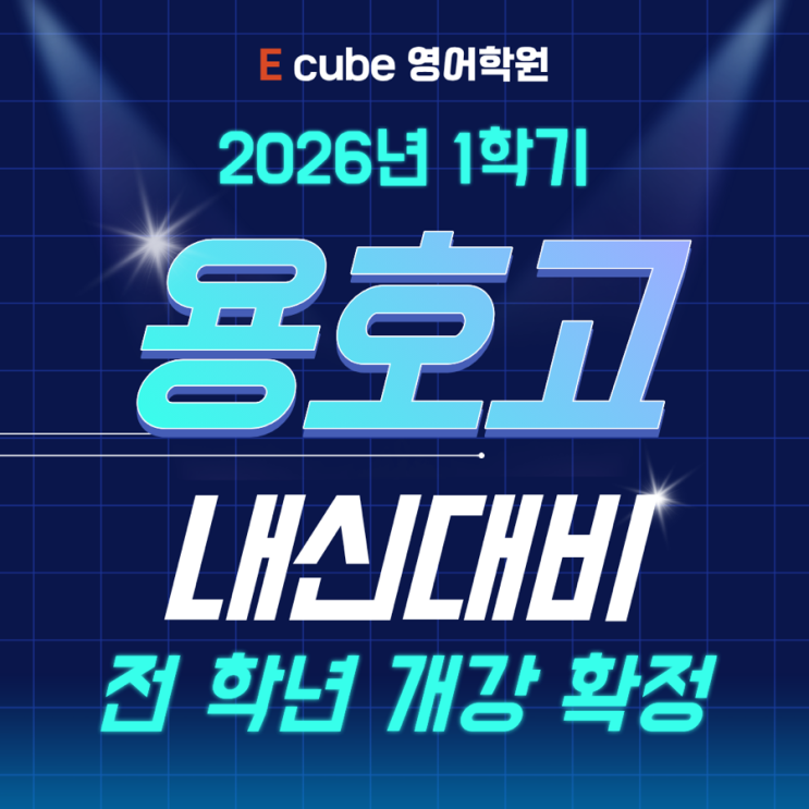 안녕하세요 이큐브 영어학원입니다. 2026년 1학기 용호고 수업시간 안내드립니다. *고등부는 비내신기간에는 수준별, 내신기간에는 학교별 수업합니다. 내신대비 수업은 3/11(수)부터 시작 예정이라 가급적 그 전에 등록 부탁드립니다. (내신대비 기간이 시작되면 도중 등록이 어려울 수 있으며, 내신대비 기간 중간에 등원하게 되더라도 앞전 진도 보충이 불가능할 수 있습니다) 자세한 수업 문의는 학원 데스크(010-8237-4636) 또는 학원 오픈채팅으로 연락주시면 안내드리겠습니다. 카카오톡 오픈채팅을 시작해 보세요. 링크를 선택하면 카카오톡이 실행됩니다. 이큐브 영어학원 https://open.kakao.com/me/ecube <img src="https://blogthumb.pstatic.net/MjAyNjAzMTBfOTgg/MDAxNzczMTE4MTI4NDgx.qrh-twGAqbIIiZUf3_pngaKA6B_IcIc7earNLr2DMkgg.mBO8EsYF-P2_Ih8NAew-cFqeC9n-hPDvtJrrQFacwqUg.PNG/8.png?type=s3" />