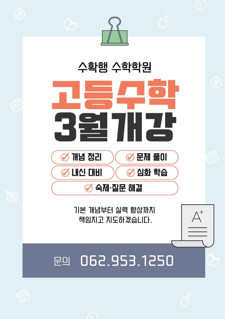 <수완지구 수확행수학학원> 고등과정 3월 개강 안내