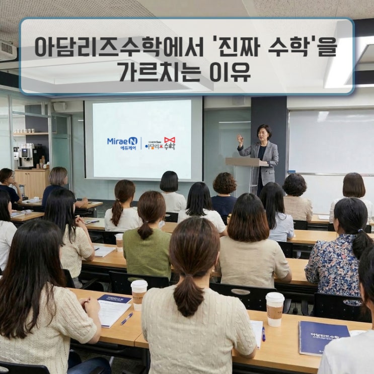 안녕하세요! 아담리즈수학 본사 미래엔에듀케어입니다! 지난 포스팅에 이어 아담리즈수학 정기연수 관련 내용을 소개합니다. [아담리즈수학 교사 정기연수] “수학의 본질을 깨우는 아담리즈 교사의 자부심: 성장하는 교사가 수학 잘하는 아이를 만든다” [아담리즈수학 교사 정기연수Ⅰ](수학의 본질) 수학, 왜 배워야 할까? [아담리즈수학 교사 정기연수Ⅱ](교육철학) 아담리즈가 '진짜 수학'을 가르치는 이유 [아담리즈수학 교사 정기연수Ⅲ](선생님 이야기) 지식 전달자가 아닌 '성장의 안내자' [아담리즈수학 교사 정기연수Ⅳ](학부모 가이드) 우리 아이 수학 머리, 어떻게 깨울까? 수학 교육은 왜 ‘지식’에서 ‘역량....... <img src="https://blogthumb.pstatic.net/MjAyNjAzMThfMTUw/MDAxNzczNzk5NjAwMzk4.sYw0DfUTtGmdK13EiAXNfsevqdSYxlm9m_LqeHxVMb4g.C8C083YG4Eh9sgYxyr7-2Tx_isfFsbGzafnvYJSEnUIg.JPEG/%C1%A4%B1%E2%BF%AC%BC%F6%BD%C3%B8%AE%C1%EE1_0313_5.jpg?type=s3" />