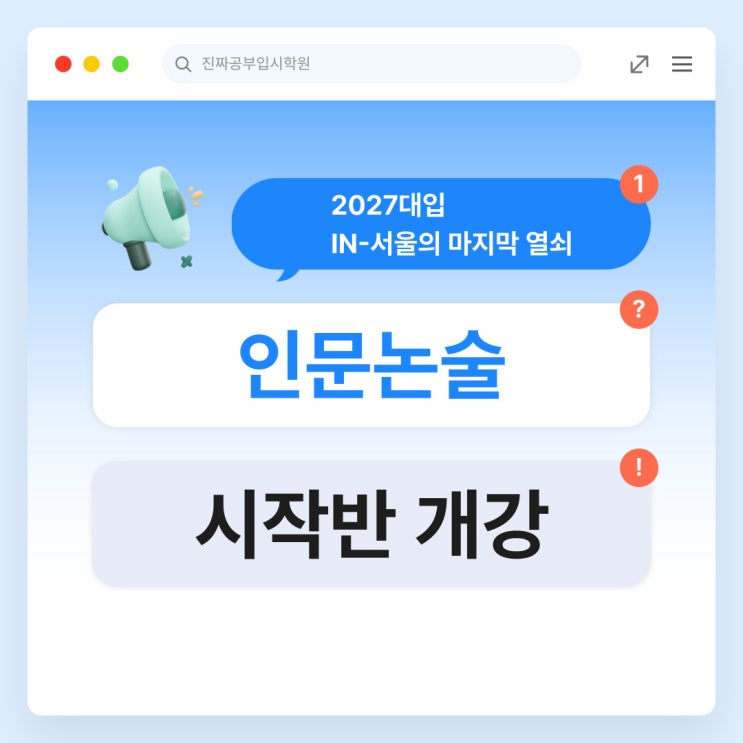 [일산논술학원]2027 대입 In-서울의 마지막 열쇠, '인문논술' 시작반 개강 (신은지T / 배유신T)