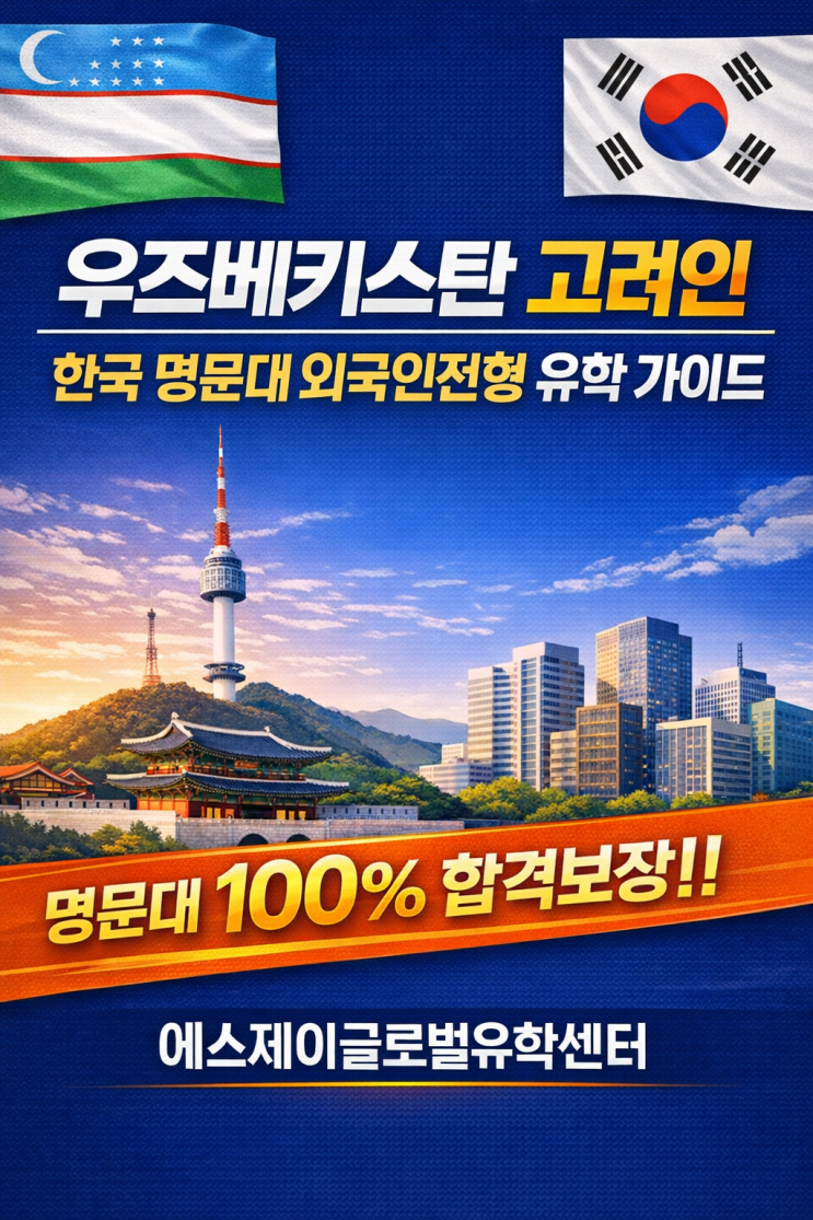 우즈베키스탄 고려인 학생, 한국 대학 외국인전형 유학 가이드 안녕하세요. 오늘은 우즈베키스탄 국적의 고려인 학생들의 외국인전형에 대해 자세한 안내를 드리고자 합니다. 고려인의 뿌리, 한국에서 다시 이어지는 교육의 길 최근 한국 대학 외국인전형에 지원하는 우즈베키스탄 학생과 고려인 학생들이 급증하고 있습니다. 특히 중앙아시아 고려인 학생들은 한국어 능력, 문화 이해도, 학업 적응력 면에서 큰 강점을 가지고 있어 한국 대학에서도 매우 선호하는 지원자 그룹으로 평가받고 있습니다. ✅ 우즈베키스탄 고려인이란? 고려인은 러시아 연해주 지역에 정착했던 조선인 후손으로, 1937년 스탈린 강제이주 정책으로 중앙아시아로 이동....... <img src="https://blogthumb.pstatic.net/MjAyNjAyMjVfMTM0/MDAxNzcyMDE0NDMwNTQ0.aWc1Hj1QvAsoIQxMBUxmx0lL1YEpi9KS8Fs7W9sqXUsg.YAE7hYXVAkiJ7zRpRAVM1lzoXqKrfj7Hxck40dSpUM8g.PNG/4db8c177-8528-4ec6-81c4-e7df18465205.png?type=s3" />