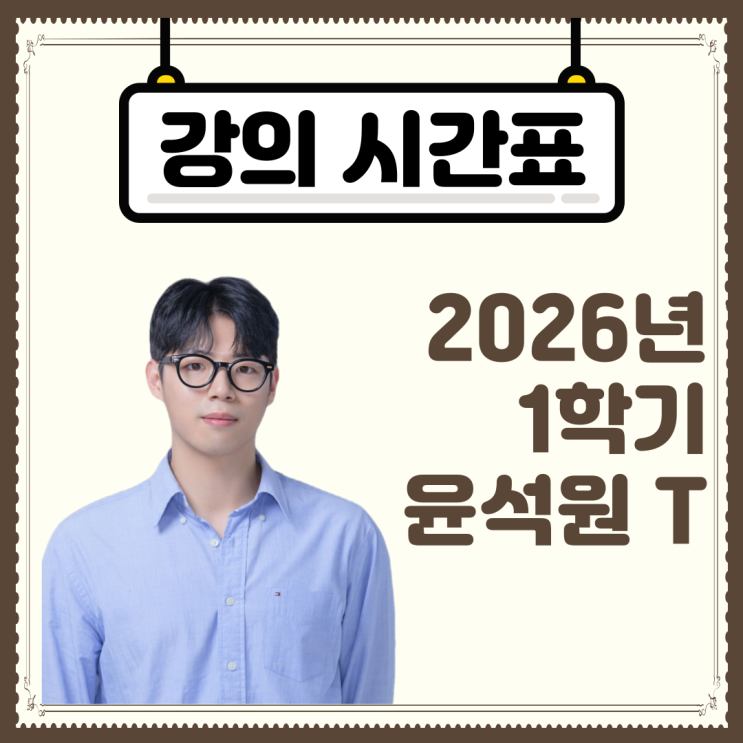 [윤석원T] 2026학년도 1학기 수업 시간표 안내