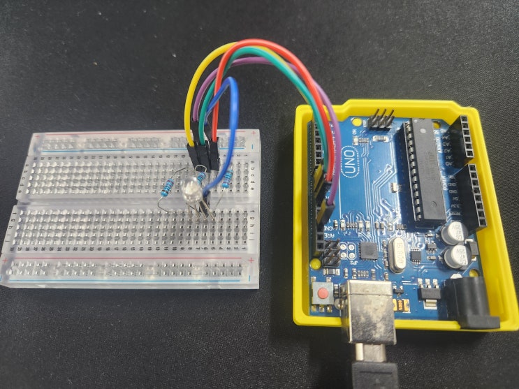 안녕하세요. 지난 2/19 ~ 2/27 일정으로 진행된 "엔트리 아두이노 피지컬 컴퓨팅" 과정에서 진행된 RGB LED 제어학습입니다. RGB 관련내용은 아래 링크 참조바랍니다. 신항초 6학년 학생이 구성한 아두이노 회로를 영상으로 담아 보았습니다. R, G, B 입력 값의 변화에 따라 LED에 표현되는 색이 변합니다. <img src="https://blogthumb.pstatic.net/MjAyNjAyMjhfMTQz/MDAxNzcyMjU4MDYyNzUw.0bdegqNv8FZP4C-XRLrObO42j9PWOEarzvnuIjGQZd4g.WVdOC78I41YJAcm8uXeTv9FJVK_p_WDCa7ipKRq5OLMg.JPEG/20260228_145126.jpg?type=s3" />