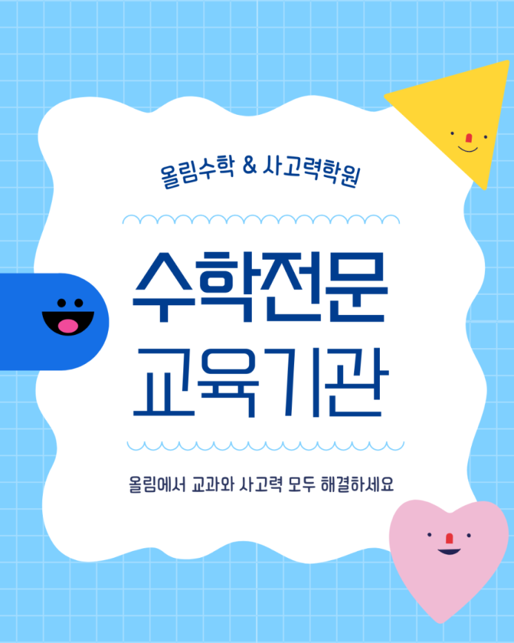 교과수학도 사고력수학도, 결국은 ‘쓰는 힘’입니다. 수학을 잘하는 아이들의 공통점은 무엇일까요? 계산이 빠른 것일까요, 문제를 많이 풀어본 경험일까요? 올림수학&사고력학원에서 아이들을 지도하다 보면, 진짜 실력의 차이는 ‘풀이과정을 얼마나 정확하게 쓰고, 오답을 어떻게 정리하는가’에서 드러납니다. ✔ 교과수학, 정답보다 중요한 과정 교과수학은 학교 시험과 직결되기 때문에 정답을 맞히는 것이 중요해 보입니다. 하지만 시험에서 실수가 반복되는 아이들의 풀이를 보면 대부분 이런 특징이 있습니다. 식을 머릿속으로만 풀고 쓰지 않음 조건 정리를 생략함 왜 그렇게 풀었는지 설명하지 못함 올림수학&사고력학원에서....... <img src="https://blogthumb.pstatic.net/MjAyNjAxMDZfMjQ1/MDAxNzY3NjcyMzg0NDcy.2VpAEvl8LPbyouSCIwvogYFY1SEzWTweX_ebkgGOEEQg.0Ikzy5XQOMPfpi2uknCmdLUOTnt9qPl42G4K__gQIhgg.PNG/900%A3%DF1%A3%DF20260106%A3%DF125937%A3%DF0000.png?type=s3" />