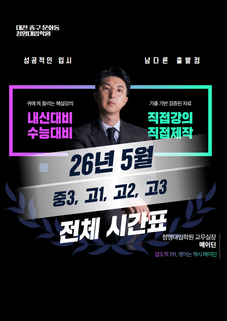 [청명대입학원] 메이딘영어 26년 5월 시간표 - 5월 7일(목) 개강 (중3, 고1, 고2, 고3)
