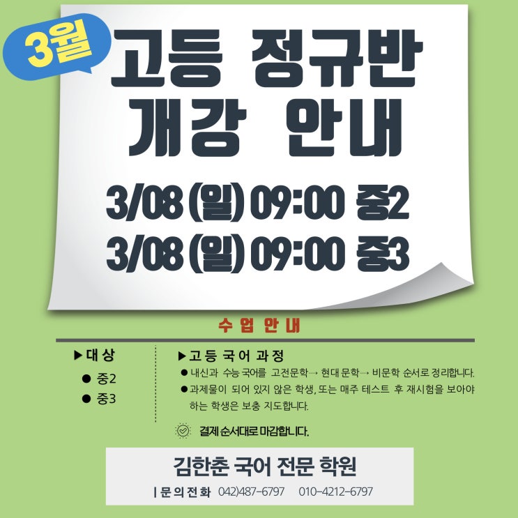 [공지] 3월 정규(고전문학)반 개강 안내