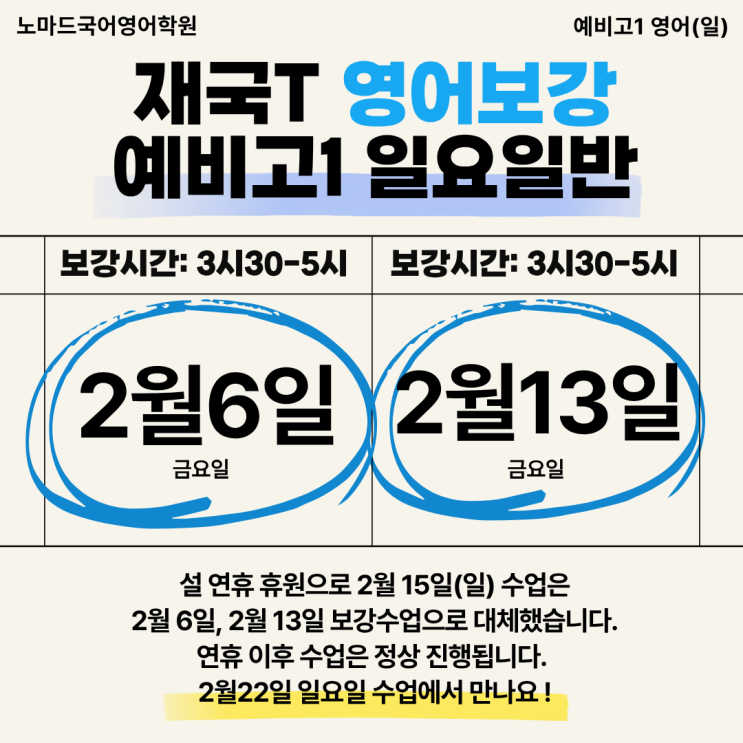 [노마드예비고1] 보강수업 마무리 안내