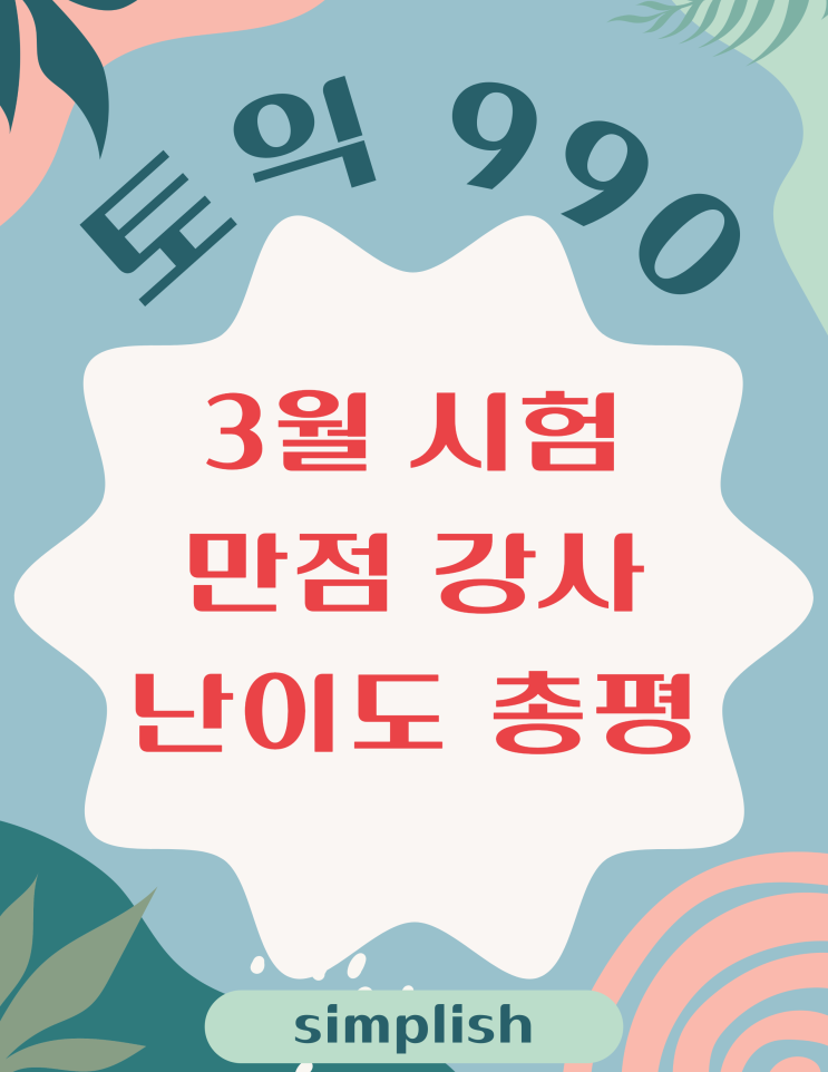 안녕하세요! 울산 토익학원 심플리쉬입니다. 어제는 3월 첫번째 토익시험이 있던 날이예요:0 다들 잘 치고 오셨길바리며 난이도 총평 정리해드립니다. LC (난이도: 하) Part 1, 2: 오답 함정이 거의 없었고, 우회 답변도 적어서 평이했어요. Part 3, 4: 패러프레이징보다 들리는 키워드가 그대로 답으로 연결되는 경우가 많아 수월했습니다. RC (난이도: 중상) Part 5 (상): 초반부터 까다로운 동사 형식과 구조 문제가 배치되어 멘탈 흔들리기 딱 좋았어요. 문법 체감 난이도 최고! Part 6 (하): 최근 2년 중 가장 쉬웠던 것 같아요. 문장 삽입도 고민 없이 바로 풀리는 수준! Part 7 (중): 지문 길이는 짧았지만, 이중/삼중 지문의 유추 문제가....... <img src="https://blogthumb.pstatic.net/MjAyNjAzMTZfMTQ3/MDAxNzczNjUzOTMxNzY3.ydGaefmFjNzV1XTnSa0lH6MBiDDu1xoCOxOnKei3L-gg.2sV4eylvw10YbHYUp8wWDzDNQJRVNZabDP6hJMuoSqcg.PNG/%3F%A0%9C%EB%AA%3F_%3F%97%86%3F%9D%8C-22.png?type=s3" />