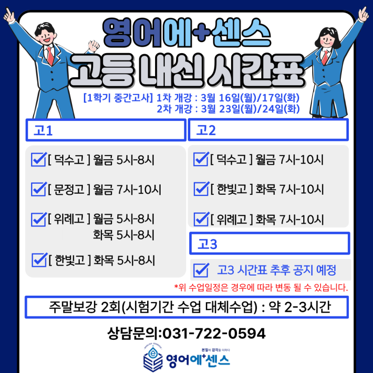 [영어에⁺센스]2026년 1학기 중간고사 고등부 시간표