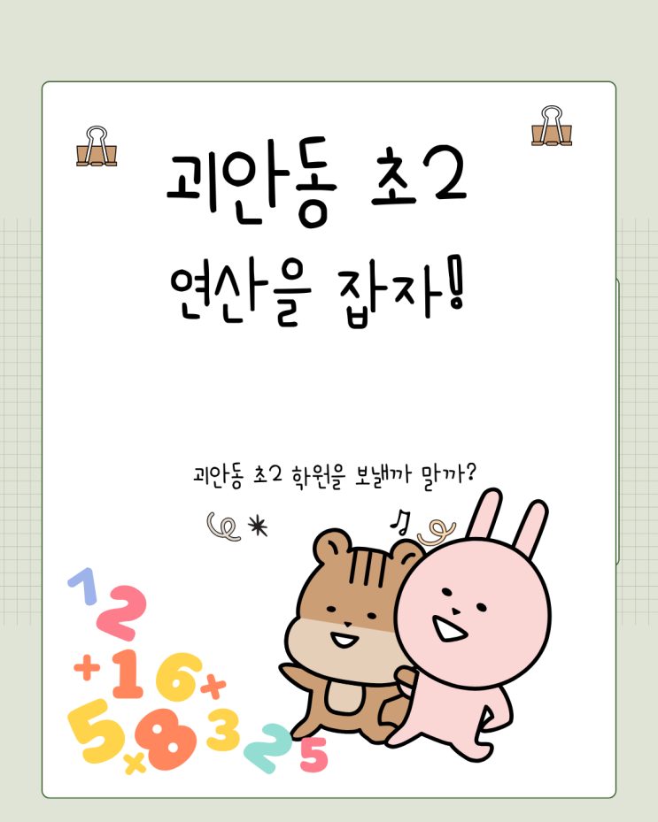 괴안동 초등수학 초2 연산 해야하나? 학원을 보내야하나?