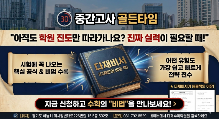 [미사 수학] 곧 다가올 중간고사 골든타임! '다재비서'로 성적 역전 시작합니다.