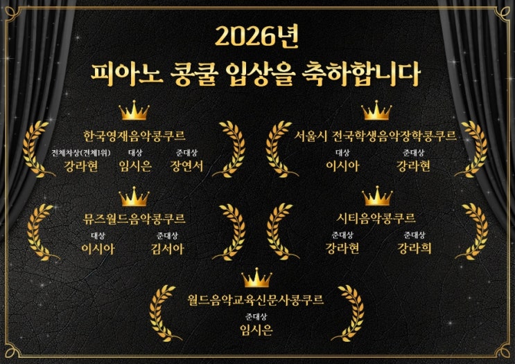 별처럼 빛난 2026 콩쿨 수상을 진심으로 축하합니다