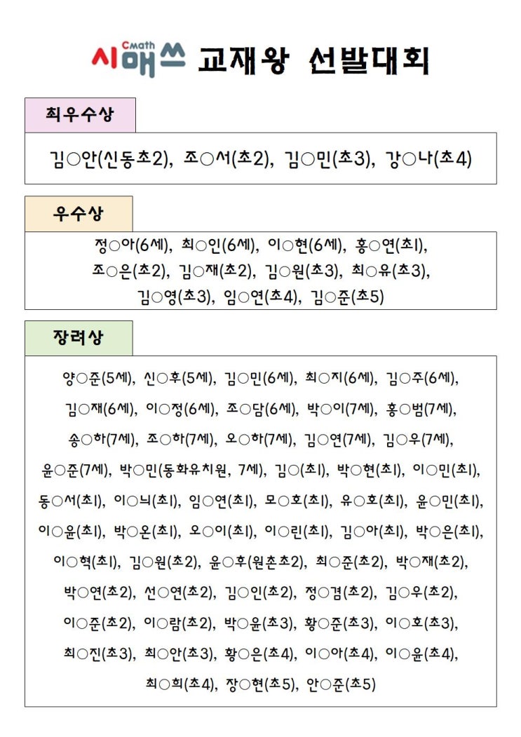 [시매쓰 서초반포센터] ♣2026년 2월 교재왕 선발대회 수상자♣