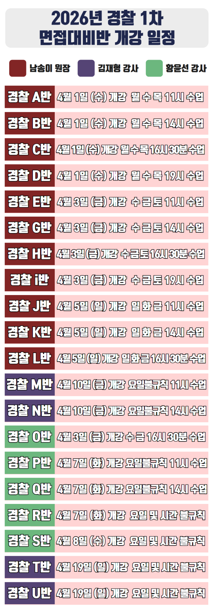 [공지] 2026년 경찰 1차 면접 대비반 수강 등록 및 상세 일정 안내