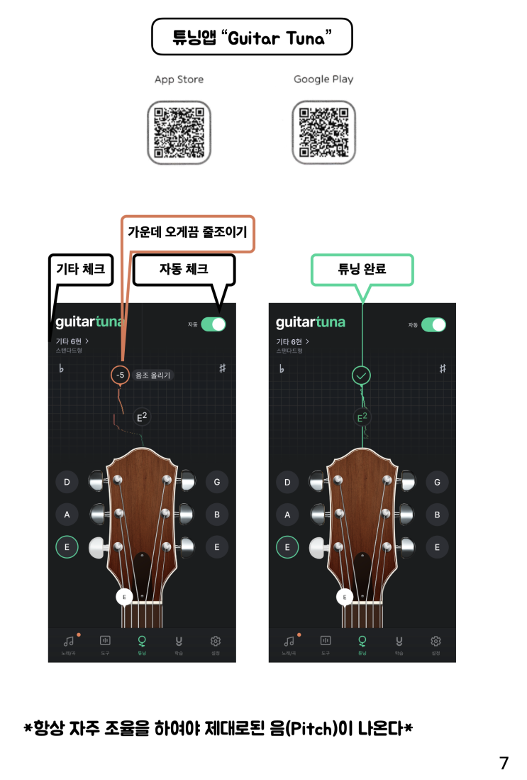 기타 튜닝 하는법(기타 소리가 이상해요)