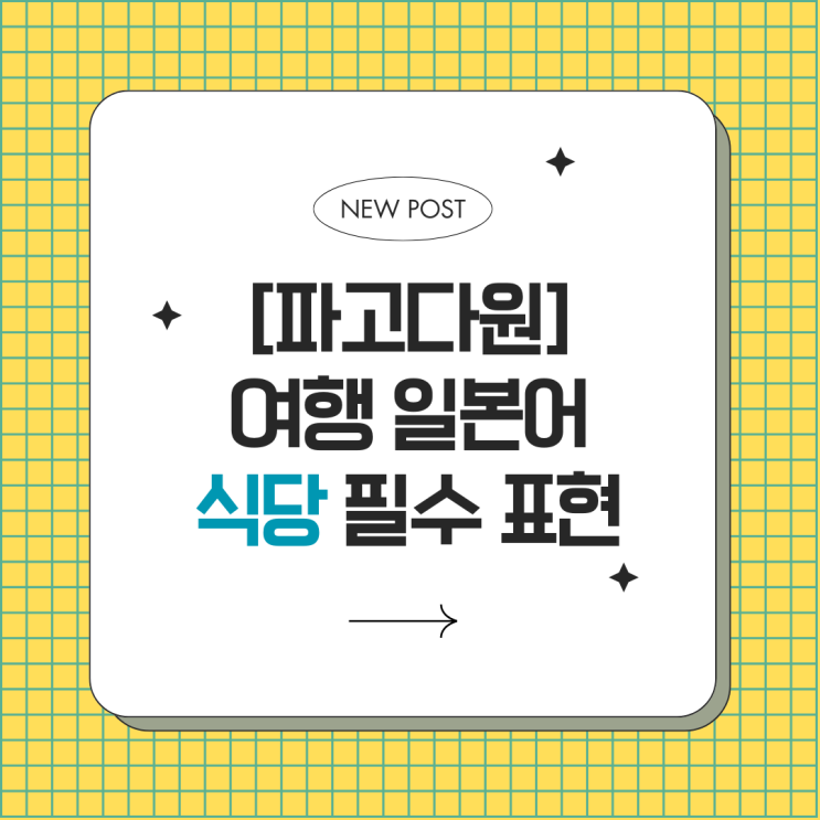 안녕하세요 여러분! 파고다원 블로그지기입니다. 일본 여행이나 일본 생활을 하다 보면 가장 자주 가게 되는 곳이 바로 식당입니다. 주문할 때, 추가 요청할 때, 계산할 때까지 기본적인 생활일본어 식당 표현만 알아도 식당 이용이 훨씬 편해진답니다! 이 글에서는 일본 식당에서 실제로 가장 많이 쓰이는 생활일본어 식당 표현을 상황별로 정리해드립니다. 일본어 초보자도 바로 말할 수 있도록 예문 중심으로 구성했으니 일본 여행을 계획 중이신 분들은 참고해 보세요! :) 생활 일본어 ✨ 식당 필수 표현✨ 완벽 정리! 식당에 입장할 때 일본 식당에 들어가면 직원이 먼저 말을 거는 경우가 많습니다. 이때 자주 듣는 표현을 이해하....... <img src="https://blogthumb.pstatic.net/MjAyNjAyMTNfMjgz/MDAxNzcwOTQzODQzMTkz.sghUQsRJrujr4TyS8a81GV51uSjxw-B41_xLRCsMwVcg.fuEs9wh4cd3EM63fGy0aOfwRVrfA_miUdl3qZfW9QNIg.PNG/%BA%A3%C0%CC%C1%F6_%B1%F2%B2%FB%C7%D1_%BA%ED%B7%CE%B1%D7_%C4%AB%B5%E5%B4%BA%BD%BA_%BD%E6%B3%D7%C0%CF_%C0%CE%BD%BA%C5%B8%B1%D7%B7%A5_%C6%F7%BD%BA%C6%AE.png?type=s3" />