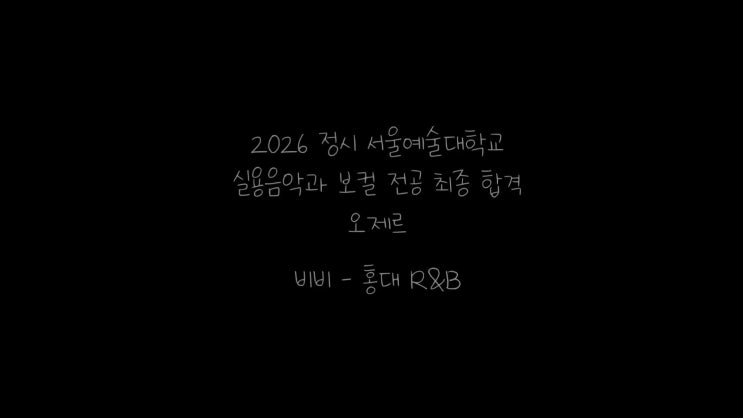 [JF 실용음악학원] 2026 정시 서울예술대학교 보컬전공 최종합격 오*르 비비 - 홍대 R&B