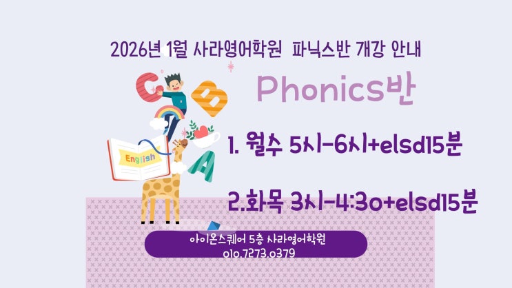 2026년 1월 개강하는 위례 파닉스 수업 소개 합니다.