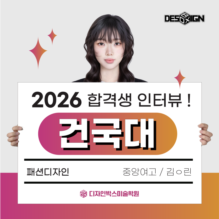 안녕하세요 여러분 (՞˙꒳˙՞) ♥부산 입시미술학원 디자인박스 미술학원♥입니다!! 오늘은 여러분께 이번 2026학년도 합격생 인터뷰를 보여드리려합니다! 그 두번째 주인공은 2026학년도 건국대 정시 합격의 주인공 김0린 학생인데요!! 과연! 우리 김0린 학생의 합격 비하인드 스토리!! 어떤 이야기들이 있을지! 인터뷰 함께 만나러 가보실까요~?? 2026학년도! ♥디자인박스미술학원♥ 건국대학교 합격!!! https://blog.naver.com/designbox1983/224169072998 2026 건국대학교 김0린 학생 인터뷰 지금 공개합니다~!!! ▼▼▼▼▼▼▼▼▼▼▼▼▼▼▼▼▼▼▼▼ 자신이 좋아하는 분야를 분명히 알고 있었고 그 방향을 향해 꾸준히 준비해왔던....... <img src="https://blogthumb.pstatic.net/MjAyNjAzMDJfMzQg/MDAxNzcyNDUwNzI1NjAy.Ih3pjA5TcasSpdnnCpd7NYOJ9IUy6zemdb9bw3W8sy0g.58l2tOnpy4k9Zwopx0iEAyCy-sk1hH_fqlwaUlAcm1Qg.PNG/26%C0%CE%C5%CD%BA%E4_%B1%E8%C7%D8%B8%B0_%B4%EB%C1%F6_1.png?type=s3" />